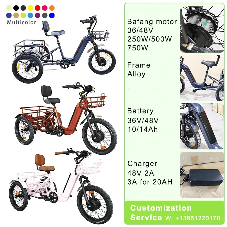 Electric Trike Fat Tire 3 Wheel Electric Tricycle Three Wheels Adult Cargo Ebike Food Delivery Electric Bike 3 Wheel