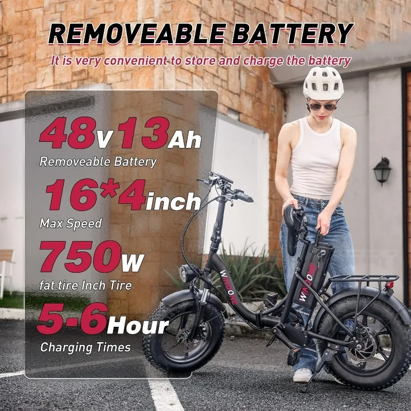 - 【750W Peak Motor】The Windone S16 electric bike features an efficient 500W brushless motor with a peak power of up to 750W, providing unparalleled power support for adult riders, it can not only reach a top speed of 22MPH, but also easily handle steep slopes of 20 %, providing cyclists with a more enjoyable and exciting riding experience.